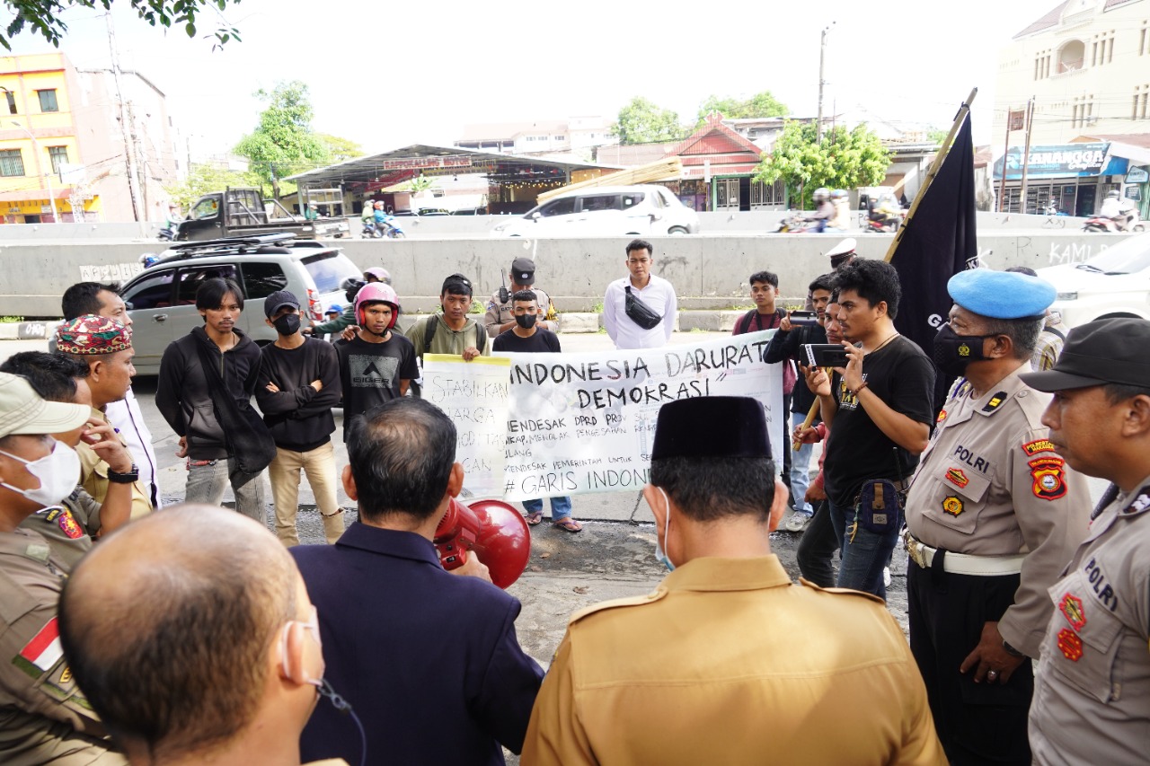 Makassar - Aksi unjuk Rasa dari gerakan rakyat intelektual Sulsel (GARIS INDONESIA) di depan gedung DPRD provinsi sulawesi selatan. Senin (27/6/202