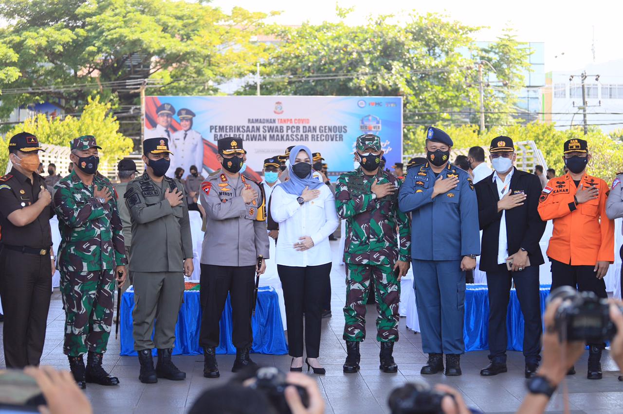 Ibu Andi Ina Kartika Sari (Ketua DPRD Sulsel) menghadiri apel gelar pasukan dalam rangka operasi Kepolisian terpusat Ketupat 2021 Pengamanan hari r
