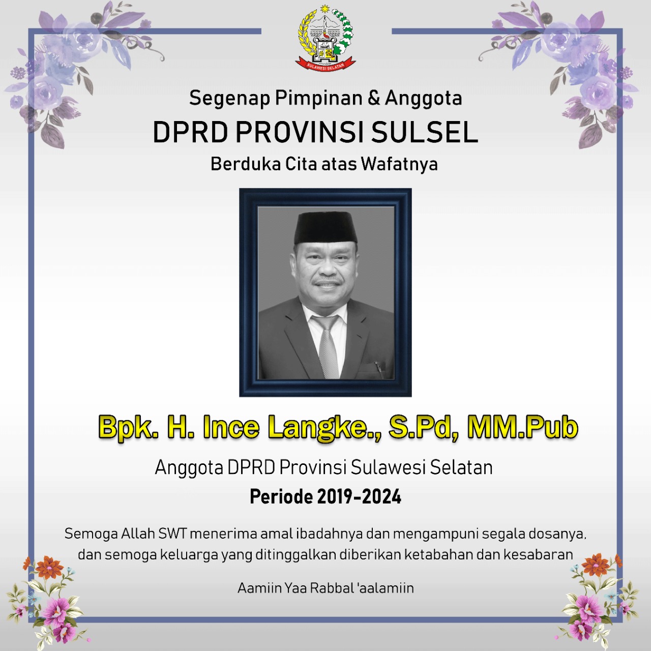 MAKASSAR - Innalillahi Wa Inna Ilaihi Rajiun, telah berpulang legislator DPRD provinsi Sulawesi Selatan Bapak Ince Langke Anggota