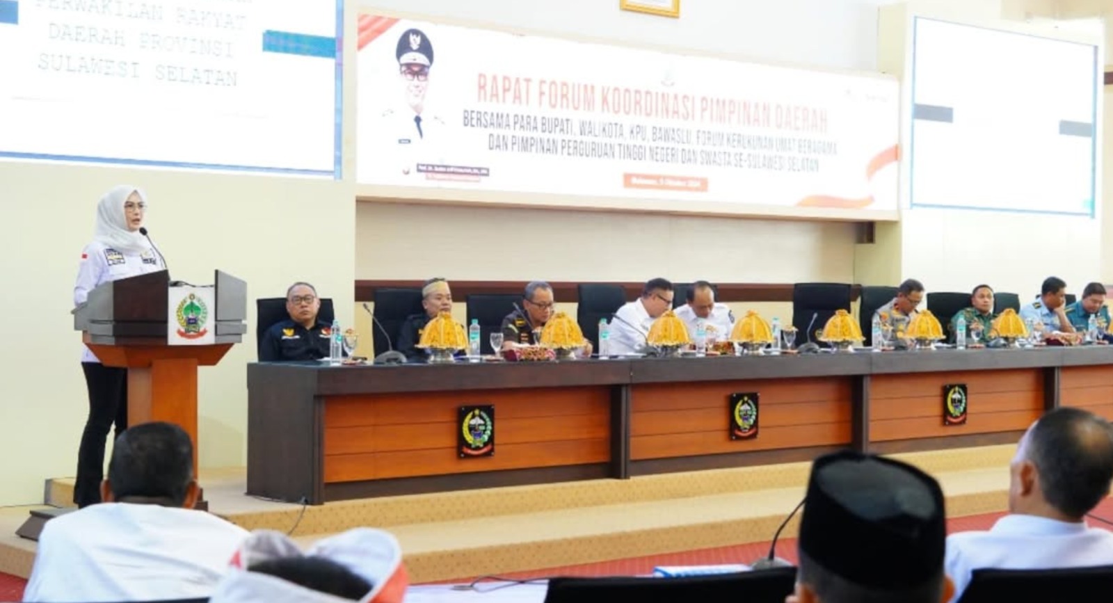 Ketua Sementara DPRD Provinsi Sulawesi Selatan, Andi Rachmatika Dewi, menghadiri Rapat Koordinasi Forkopimda Sulsel bersama Ketua KPU dan Bawaslu S