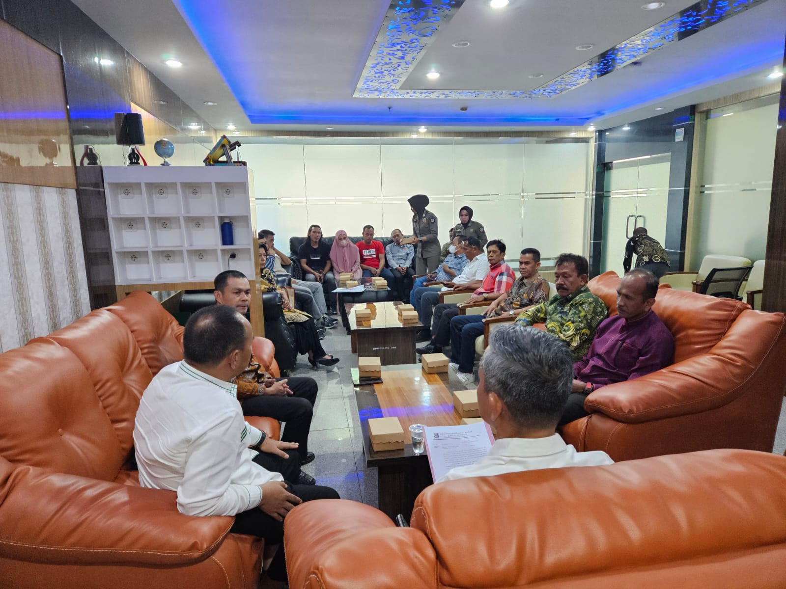 DPRDSULSEL - Anggota DPRD Sulsel, Andi Januar Jaury Dharwis bersama Dr. H. Saharuddin menerima kunjungan DPRD Kabupaten Enrekang, di ruang ta