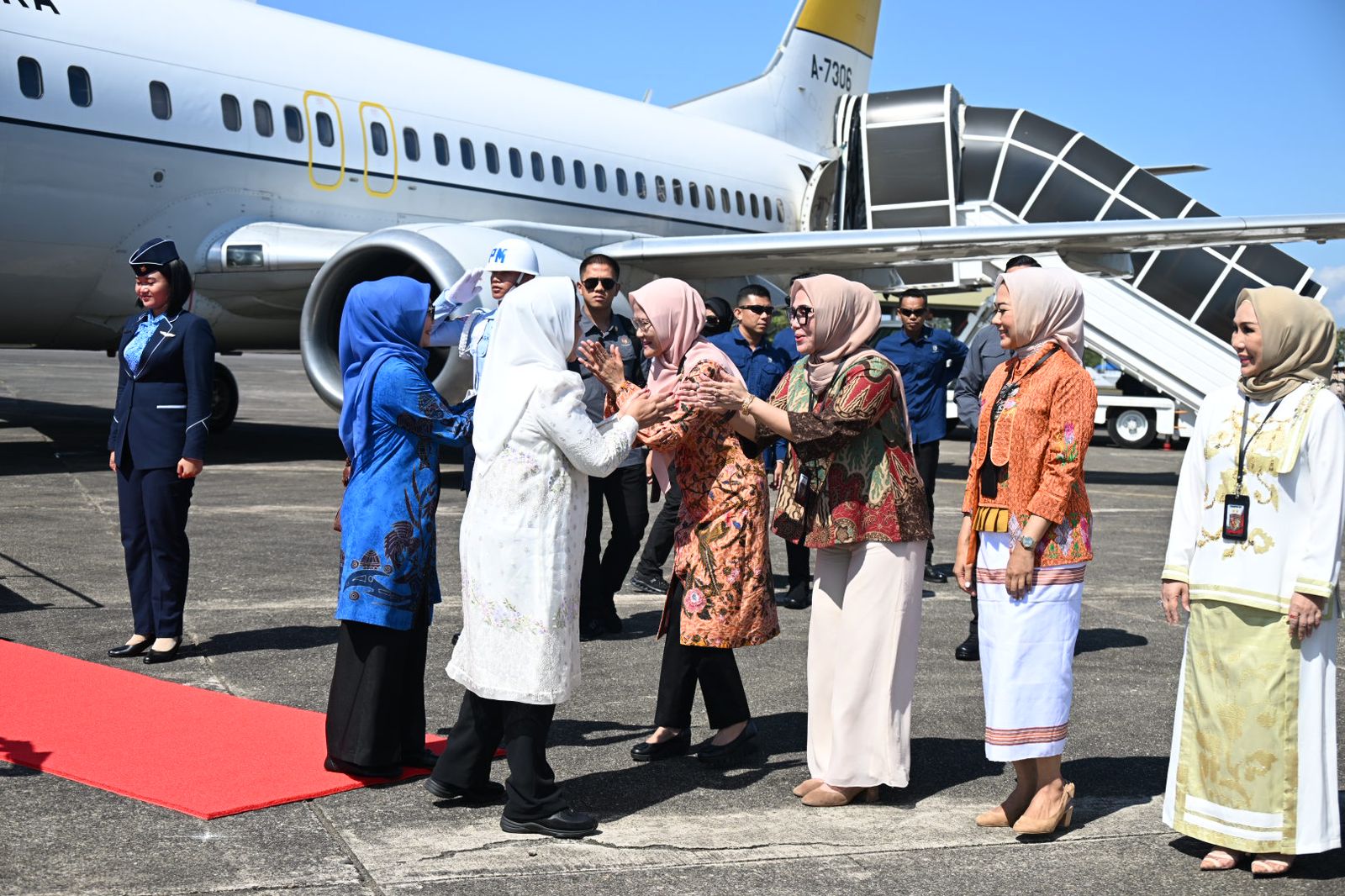 DPRDSULSEL - Ketua DPRD Sulsel, Andi Ina Kartika Sari bersama para istri pejabat Forkopimda Sulsle menyambut kedatangan ibu Wury Ma’ruf amin