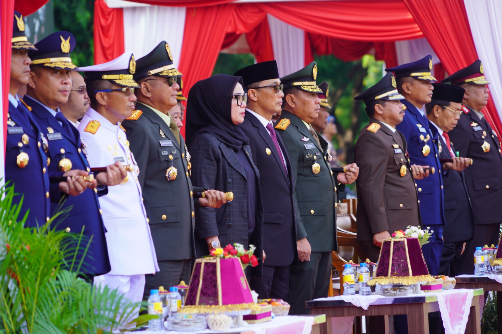 DPRDSULSEL - Ketua DPRD Sulsel, Andi Ina Kartika Sari menghadiri upacara Hut Bhayangkara yang ke 78 yang dilaksankan di lapangan upacara Mapolda Su