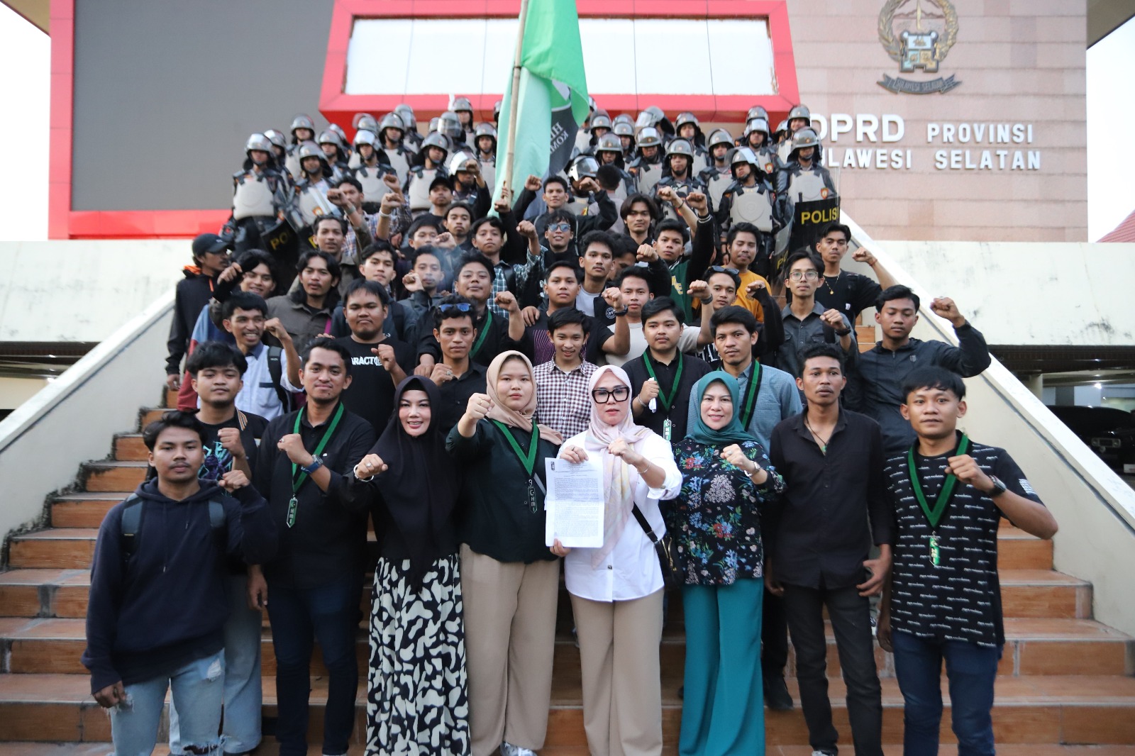 DPRDSULSEL - Aksi demontrasi yang dilakukan Himpunan Mahasiswa Islam (HMI) Cabang Makassar di Kantor DPRD soal Tanah Perumahan Rakyat (Tapera) dite