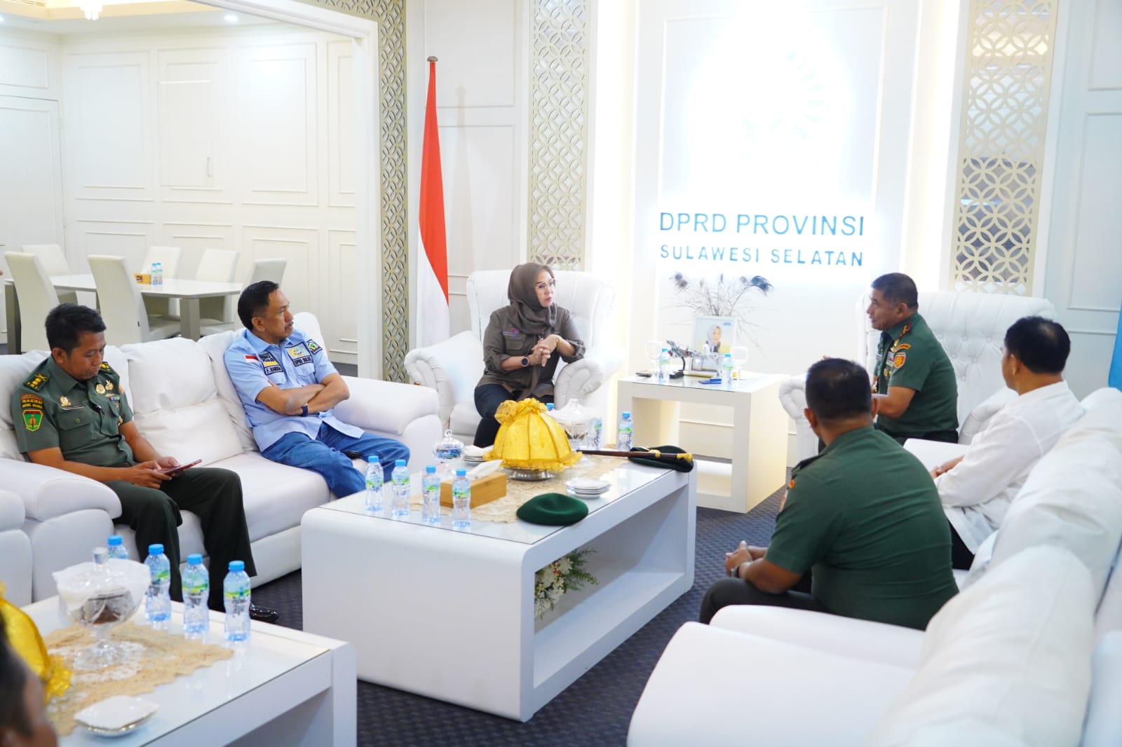 DPRDSULSEL - Ketua DPRD Sulsel, Andi Ina Kartika Sari menerima kunjungan kerja Panglima Divisi Infanteri 3 Kostrad, Mayjen TNI Bangun Nawoko di rua