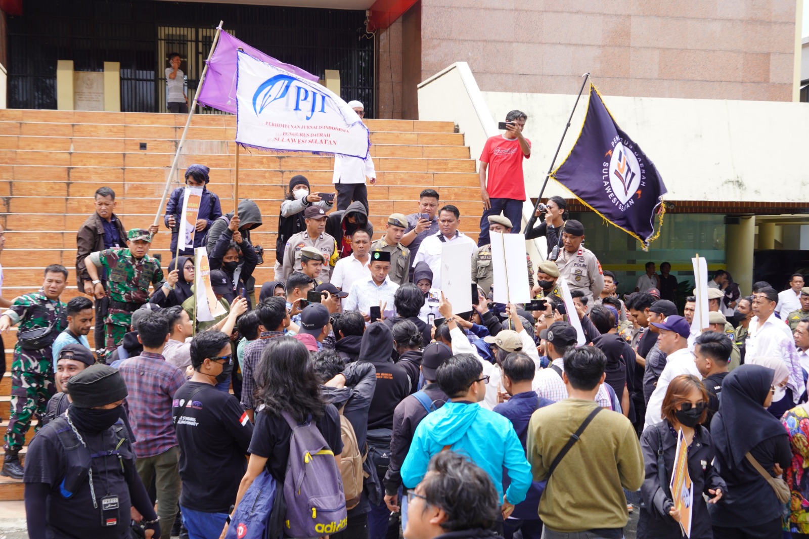 DPRDSULSEL- Wakil Ketua DPRD Sulsel, Syaharuddin Alrif menerima aspirasi berbagai lembaga jurnalis yang menginginkan pelaksanaan seleksi KPID Sulse
