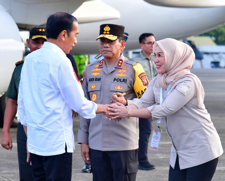 DPRDSULSEL - Presiden RI Joko Widodo tiba di Bandara Internasional Sultan Hasanuddin, Kabupaten Maros, Sulawesi Selatan, Rabu sekitar pukul 1