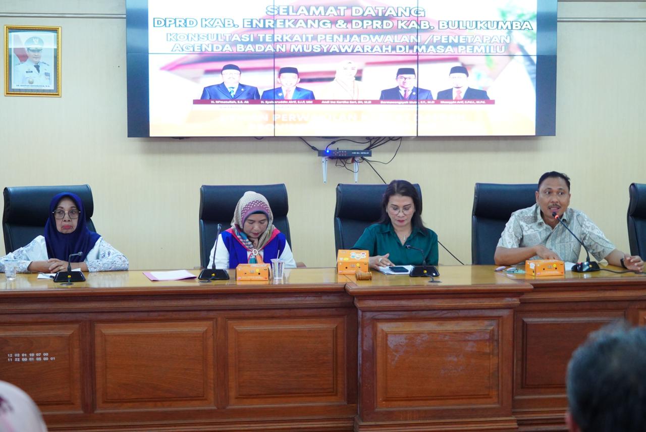 DPRDSULSEL - Anggota DPRD Sulsel, Firmina Tallulembang menerima kunjungan kerja Badan Musyawarah (Bamus) DPRD Kabupaten Enrekang dan DPRD Kabupat