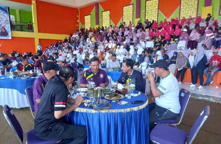 DPRDSULSEL- Anggota DPRD Sulsel, H. Saharuddin bersama Sekwan DPRD Sulsel, M. Jabir menghadiri jalan santai dalam rangka Hut PGRI ke 78 Dan Hari Gu