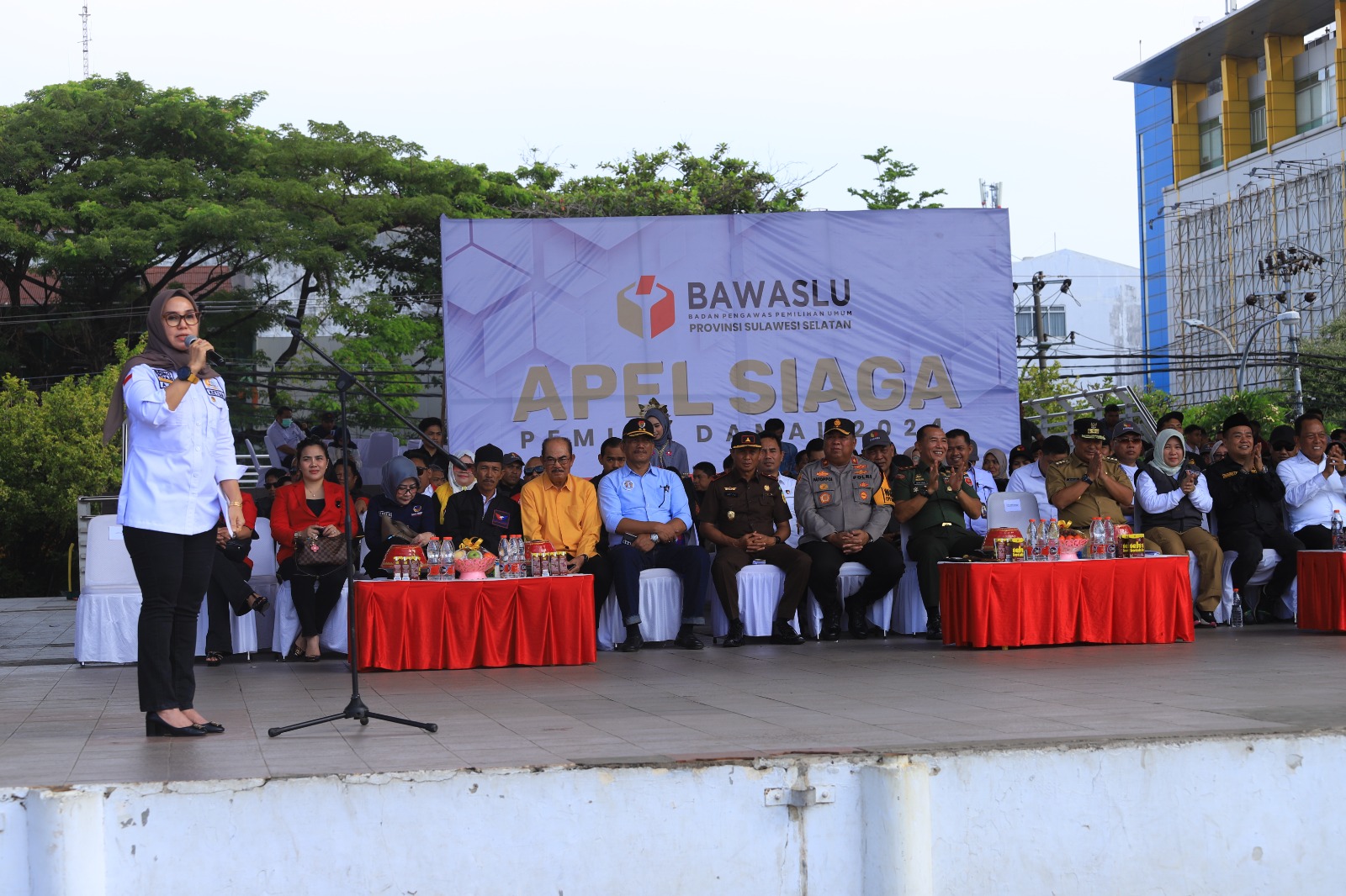 DPRDSULSEL - Ketua DPRD Provinsi Sulawesi Selatan (Sulsel) , Andi Ina Kartika Sari menghadiri Apel siaga pengawasan tahapan kampanye yang dikemas d