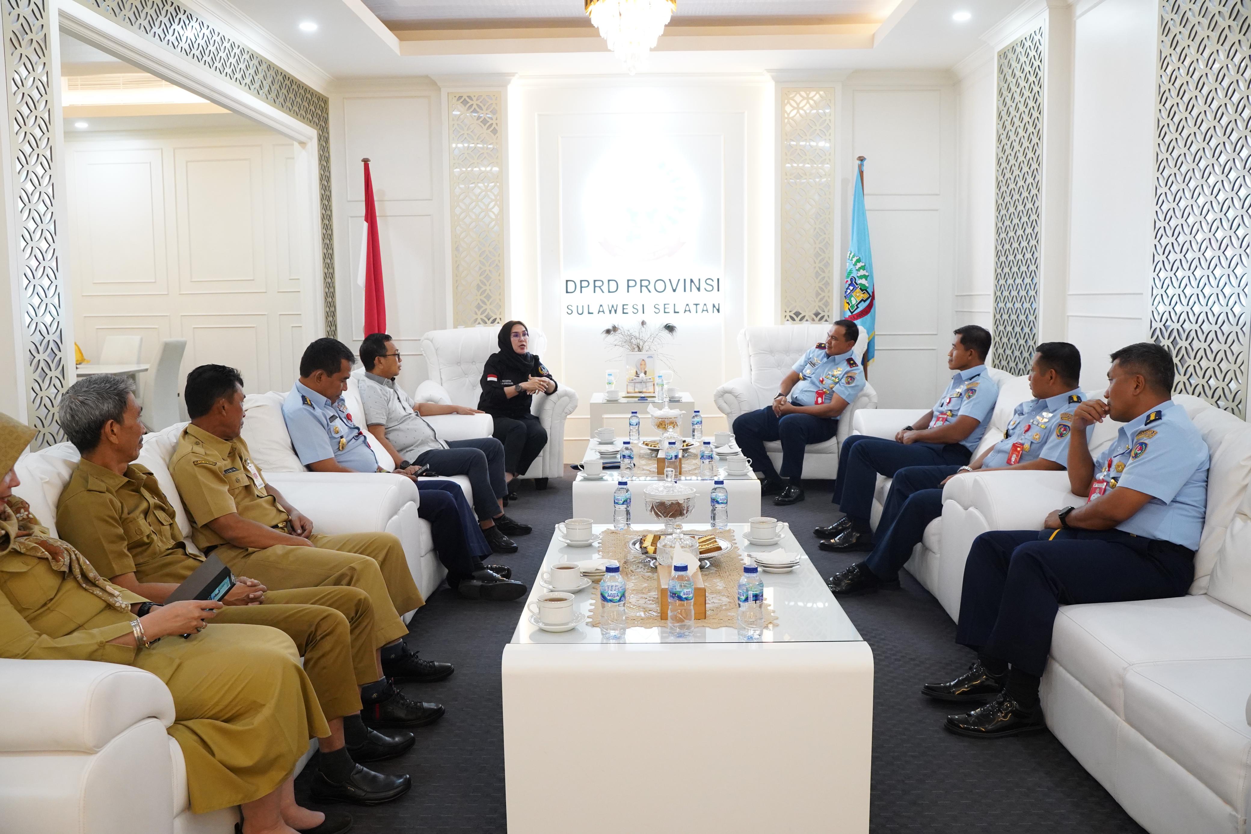 DPRDSULSEL - Ketua DPRD Sulsel, Andi Ina Kartika Sari menerima kunjungan kerja Dankosek II Koopsud II, Marsma TNI Dedy Ilham S. Salam bersama jajar