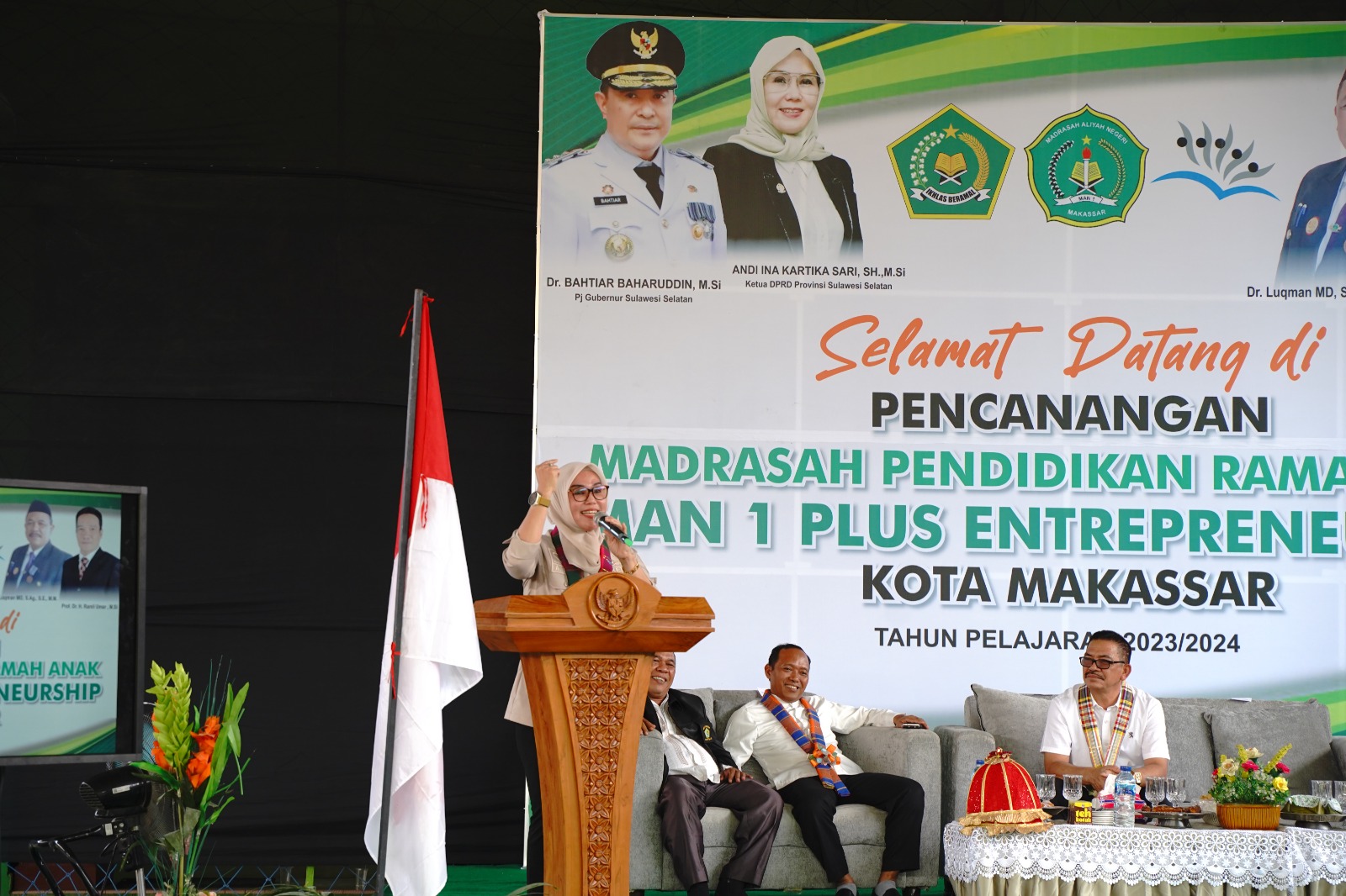 DPRDSULSEL - Ketua DPRD Provinsi Sulsel, Andi Ina Kartika Sari, SH.,M.Si menghadiri acara Pencanangan Madrasah Pendidikan Ramah Anak MAN 1 Plus Ent